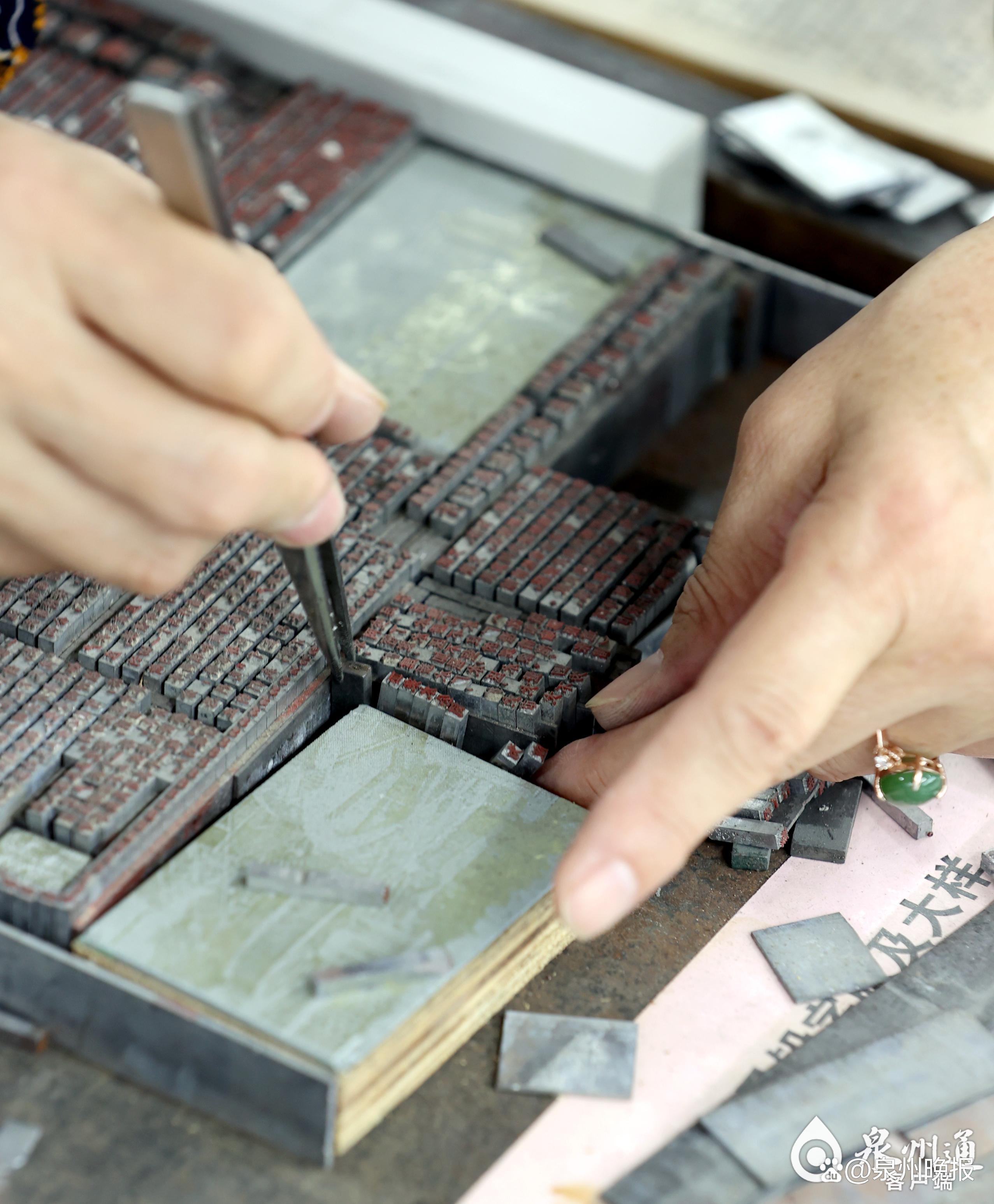 “你帮不上忙的,这个有很高要求的。”庄荣凤笑着说,这要是在当年,她从字架上拣字排版,用不了半天的时间。如今要还原已经打乱的铅字版,她需要先一个个字排列整齐,再对着文章一个个字挑。就这样,用了五天的时间,当看到还原好的铅字版时,她心情格外激动,一再叮嘱现场工作人员要保存好,“37年前《泉州晚报》创刊号铅字版,保存至今,非常珍贵”。
