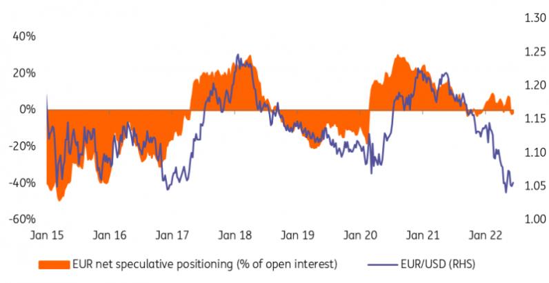 虽然现在欧元兑美元跌至平价,但从芝加哥交易所的头寸来看,大的交易商并还没有大幅做空欧元,做空量远远没有2019、2015年来的猛烈,空头还没有大幅积聚,似乎预示着欧元还将进一步走低。