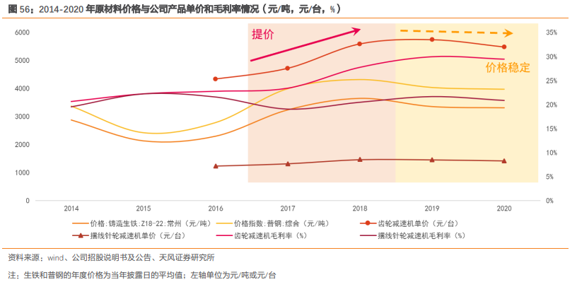 公司收购铸件制造商(泛凯斯特),延伸上游产业链,自制率提高强化成本控制(有望实现新增减速机产能齿轮的100%自制),产业链溢价能力强,原材料价格上涨时产品提价反应迅速+原材料价格下降时能够稳住产品单价,有望保持稳定毛利率。
