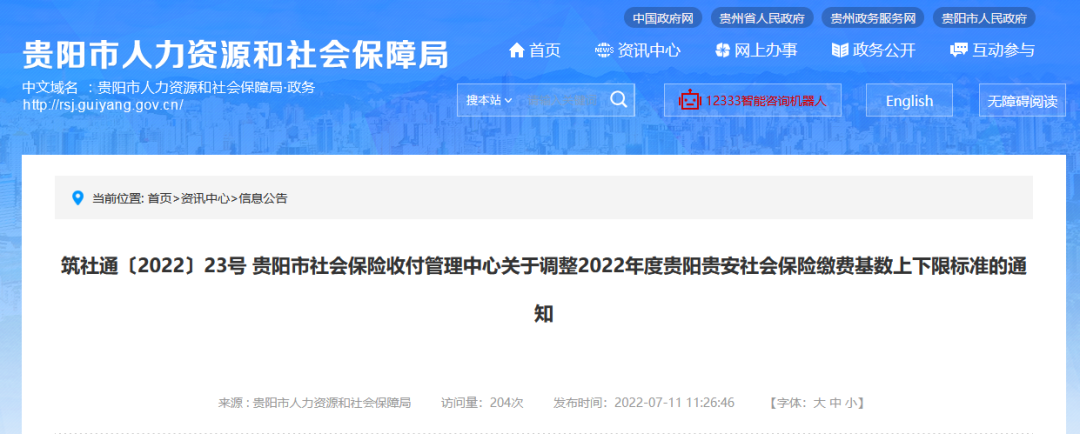 根据《贵州省人力资源和社会保障厅 贵州省统计局关于公布2021年贵州省全口径城镇单位就业人员年平均工资和执行企业养老保险制度退休人员月人均基本养老金的通知》(黔人社发〔2022〕16号)文件精神,2021年度贵州省全口径城镇单位就业人员年平均工资为81570元,月平均工资为6797.50元,现将贵阳市2022年度社会保险缴费基数调整有关事宜通知如下: