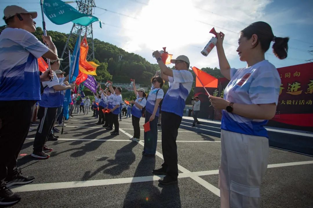 领导们共同鸣笛,毅行活动正式拉开帷幕。各支队伍有序分批,昂首启程,以饱满的精神向终点行进。
