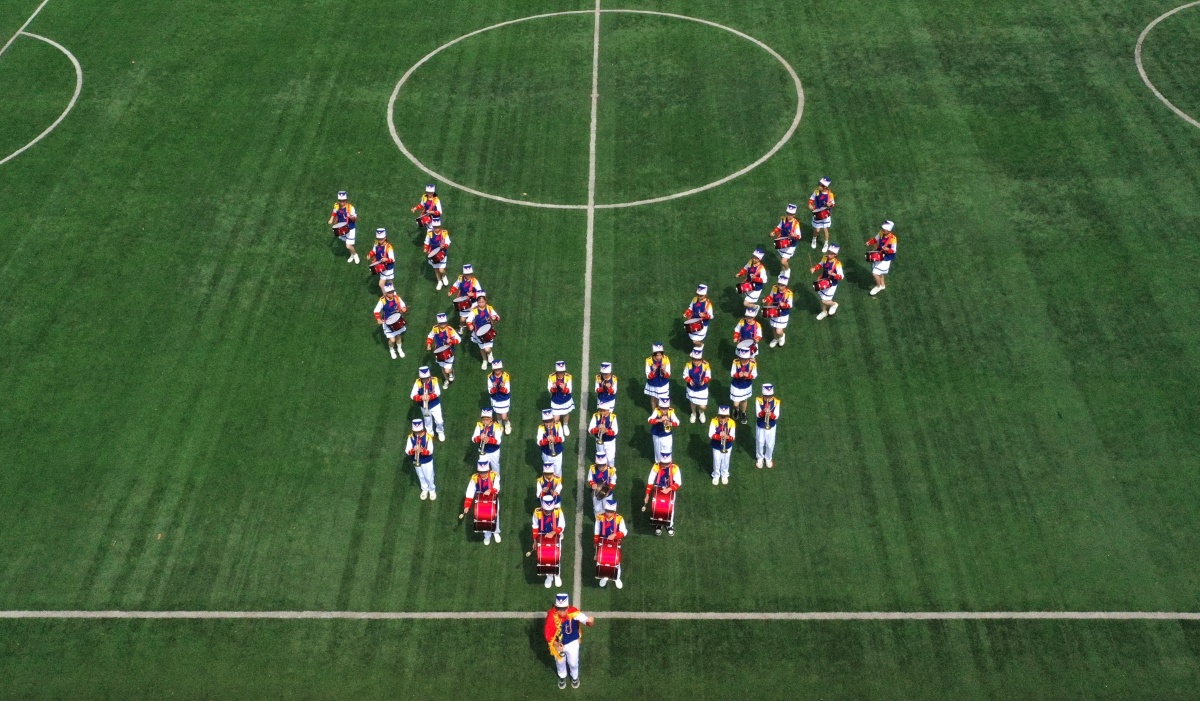 航拍粤桂小学鼓号队。(黄永福 摄)