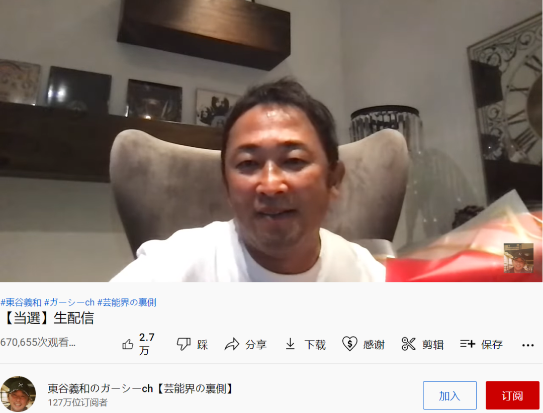 东谷义和接连爆出“绫野刚酒醉带未成年开房”、小栗旬KTV不雅照等内容,还称知道成田优、新田真剑佑、佐藤健、山下智久等人饮酒聚餐时的内幕。目前其YouTube频道订阅数超过127万。