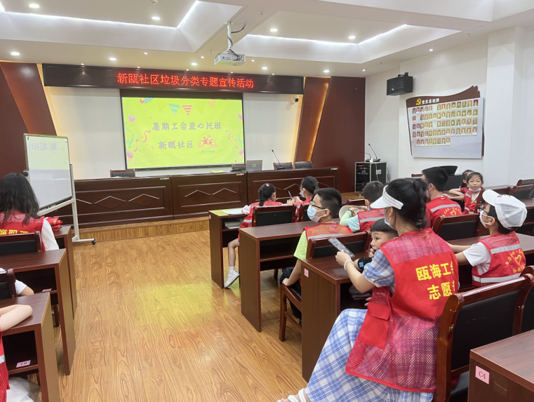 为共创美好人居环境,传播绿色环保意识,7月5日新瓯社区联合温州商学院红十字志愿者协会成员,开展“环境卫士”暑期社会实践活动。上午九点半,商学院红十字会志愿者为青少年带来了一场生动有趣的垃圾分类讲座,向青少年们介绍垃圾分类的相关知识和分类方法。通过科普宣传,在场的青少年们掌握了垃圾分类的处理方法,为实践展开做好准备工作。