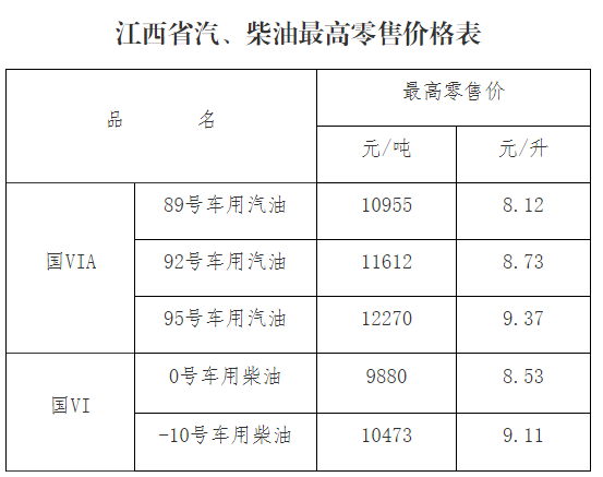92号汽油每升下调0.28元;95号汽油每升下调0.30元;0号柴油每升下调0.29元。根据国家发展改革委门户网站发布的成品油价格调整信息,现将江西省汽、柴油最高零售价格公布如下,自2022年7月12日24时起执行。