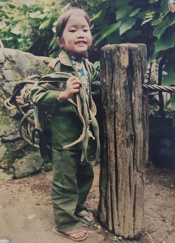 余燕恰幼时在江边的溜索桩旁