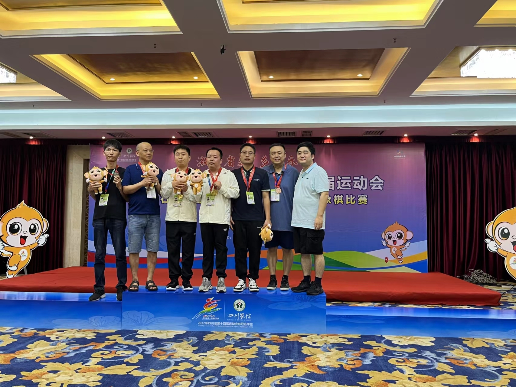“四川农信杯”四川省第十四届运动会“金石新能源杯”群众体育项目国际象棋比赛今天在乐山市沐川县的竹海大酒店落幕。本次比赛共有来自成都、自贡、德阳、绵阳、乐山、南充、遂宁、宜宾、广安、雅安等10个地市州的代表队参加,成都队共派出8名队员参加了全部五个组别的比赛,经过努力拼搏夺得5个项目中的4金1银,排名第一。