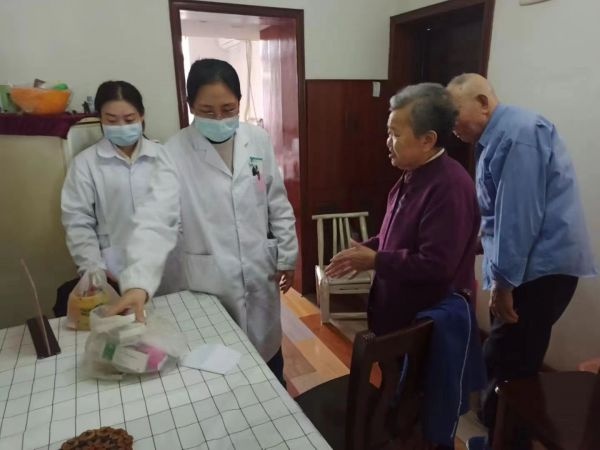 六角亭街社区卫生服务中心的医护人员指导老年人用药。通讯员胡莎供图