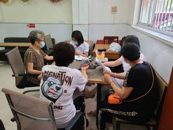 六角亭街社区卫生服务中心的医护人员对老年人进行健康教育。通讯员胡莎供图