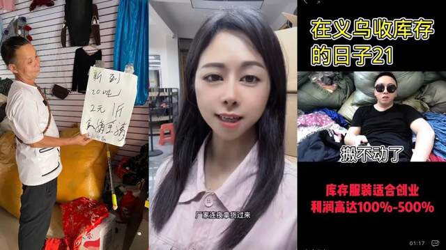 每一则短视频中,她都会晒自己的“库存货穿搭”和收货现场实录,为大家预热今天将到货哪些好东西。东子也会拍摄短视频,以介绍义乌库存市场为主,像位“库存科普博主”,告诉大家去哪里淘好货。