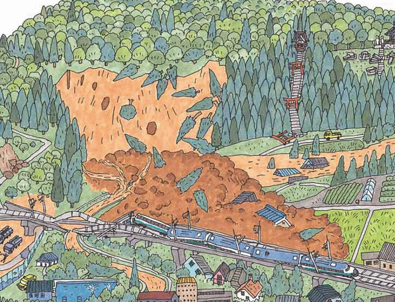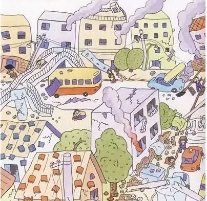 不妨拿出一张地震的图片,问孩子:“仔细看一看,这座城市有什么地方不对劲吗?”