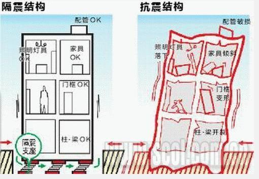 纵波的振动方向与波的传播方向是一致的,而横波的振动方向则与传播方向是垂直的关系。因而,纵波到达地面时,人感觉颠动,物体上下跳动,而横波到达地面时人感觉摇晃,物体会来回摆动。从速度上说,纵波的传播速度比横波要快,因此地震时,纵波总是先到达地表,而横波总落后一步。纵波与横波之间有几秒到十几秒的时间差。一般来说,造成地面左右晃动的横波是造成建筑物倒塌的主要原因。