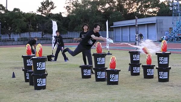 像不像公园里的 “射击游戏”?其实这是在模拟紧急救火的“水桶射击”。