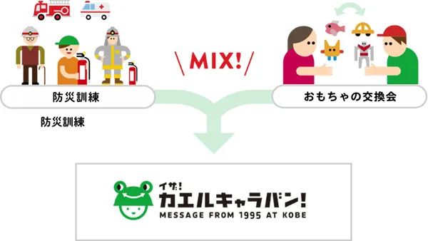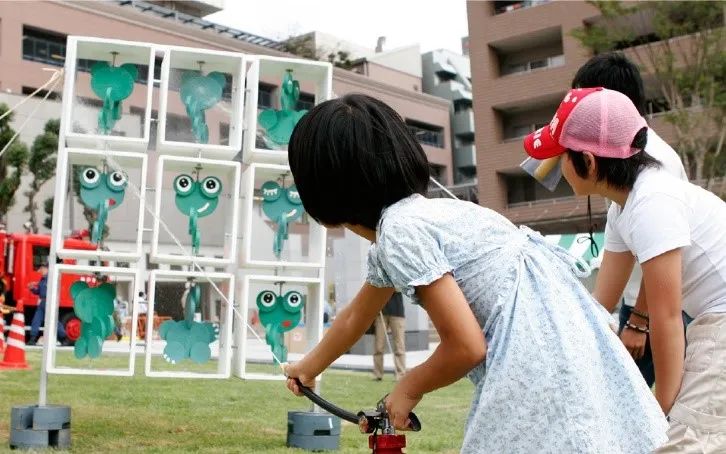 “一起来!青蛙大篷车”参考了由美术家藤浩志于2000年设计的玩具交换活动。在玩具交换活动中,小朋友们可以将自己的玩具兑换成积分,再用积分兑换其他玩具。