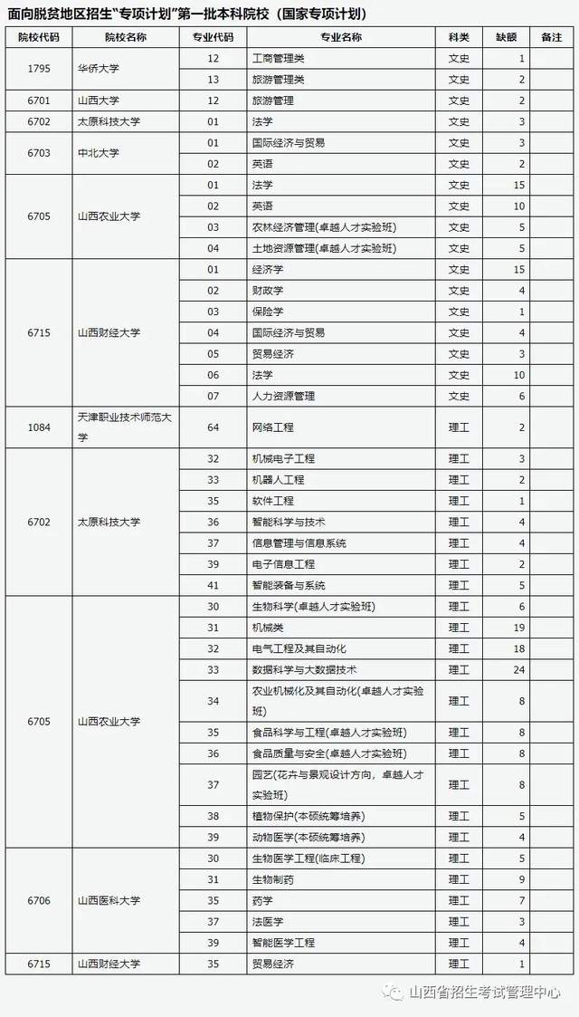 目前,我省提前艺术本科、提前本科一批、面向脱贫地区招生“专项计划”第一批本科院校因生源不足或考生不服从专业调剂退档出现缺额。现予集中公布,公开征集志愿。