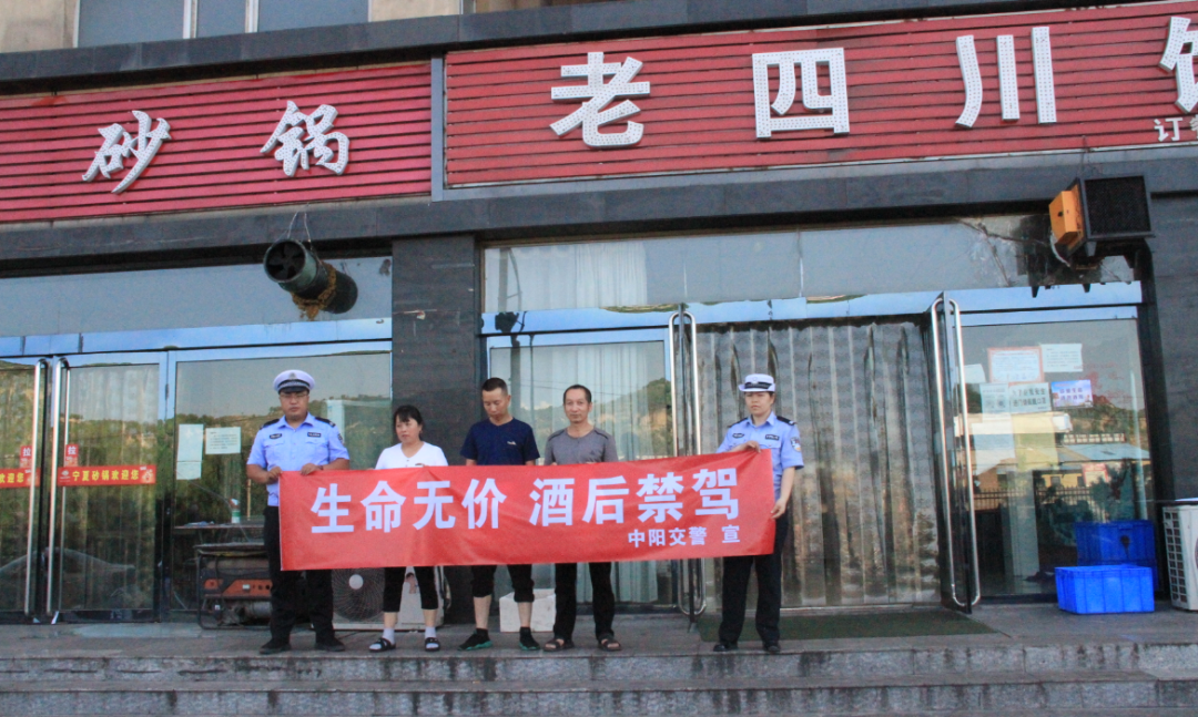 中阳交警大队组织民辅警深入到辖区酒店、宾馆、饭店等涉酒场所开展以“生命无价 酒后禁驾”为主题的交通安全宣传活动,将交通安全摆上餐桌,筑起第一道交通安全防线。