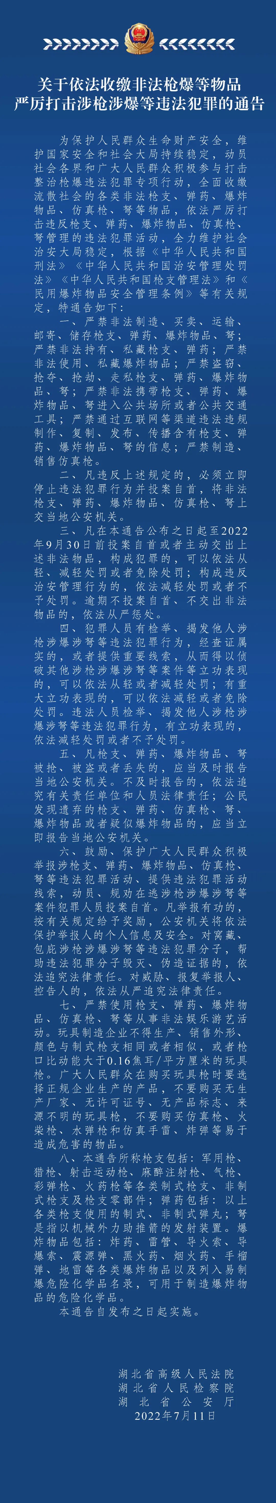 严厉打击涉枪涉爆等违法犯罪的通告》