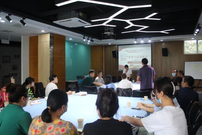 随后,何老师围绕社会组织如何开展党建工作进行了详尽的分享。一是坚持社会主义核心价值观,围绕本地核心战略规划开展党建工作;二是利用“五社联动”机制的功能,结合社会工作与社会组织的特点,发挥社会工作专业技巧与资源整合的优势,链接党员志愿者等资源,结合项目情况,针对儿童、老年等特殊群体开展活动,让社会组织党建与业务相融共生;三是加强社会组织党建人才队伍培养,采用专兼职结合,多渠道发展的策略,加强党务工作者的业务培训。