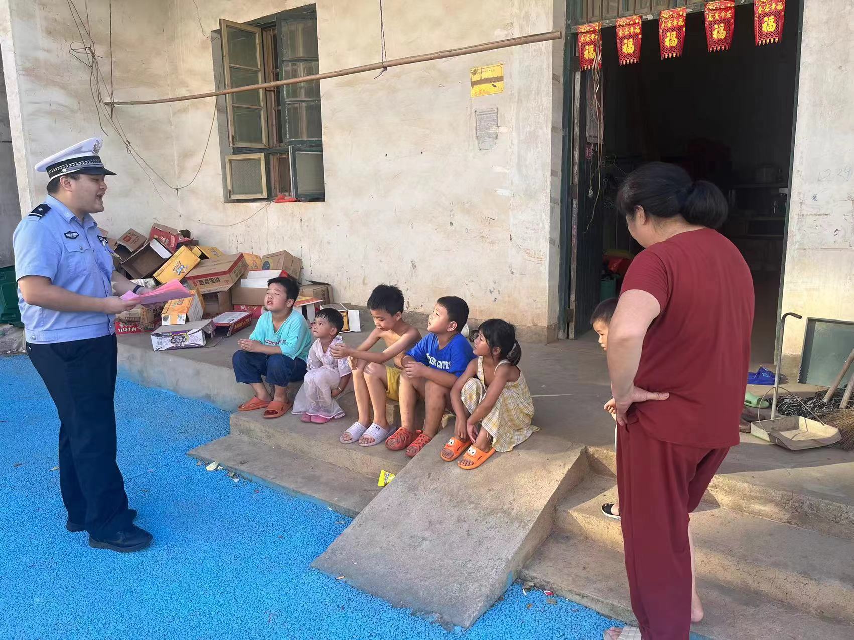 为增强留守儿童道路交通安全意识,有效预防和减少道路交通事故的发生,7月11日,乐平市公安局交警大队事故中队组织民警走进农科园三百分村,针对留守儿童开展了交通安全知识宣传,切实为“留守儿童”撑起“安全伞”,系紧“安全带”。