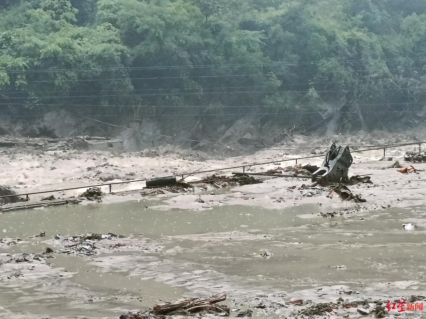 7月12日早上6时,四川省绵阳市平武县木座乡因降雨河水暴涨突发山洪,造成交通、电力、通讯中断,部分农房冲毁。