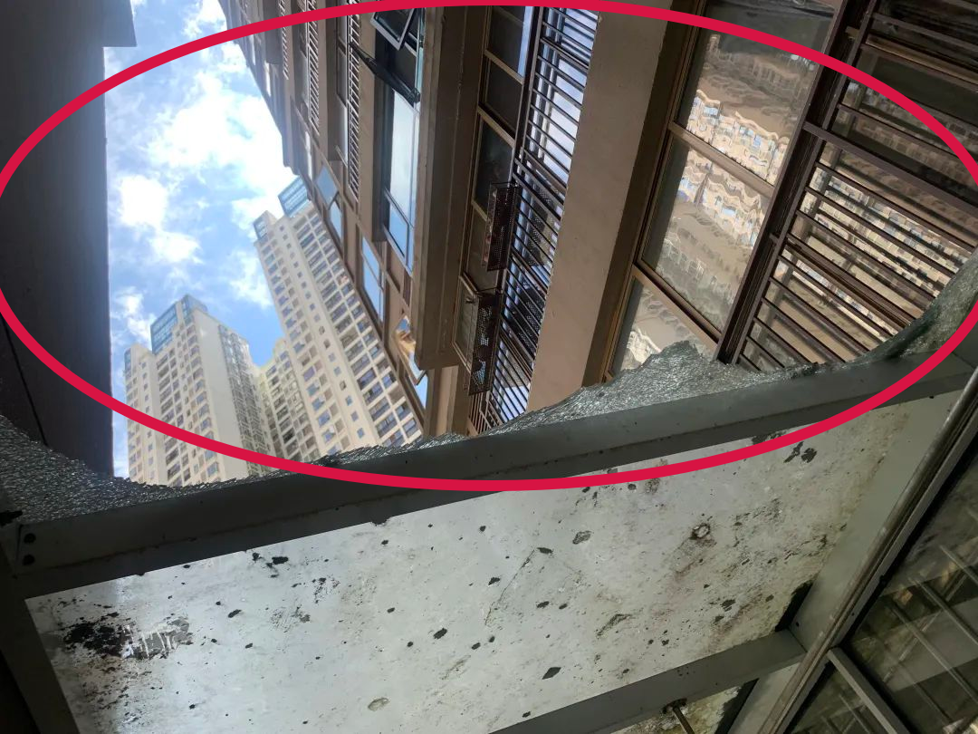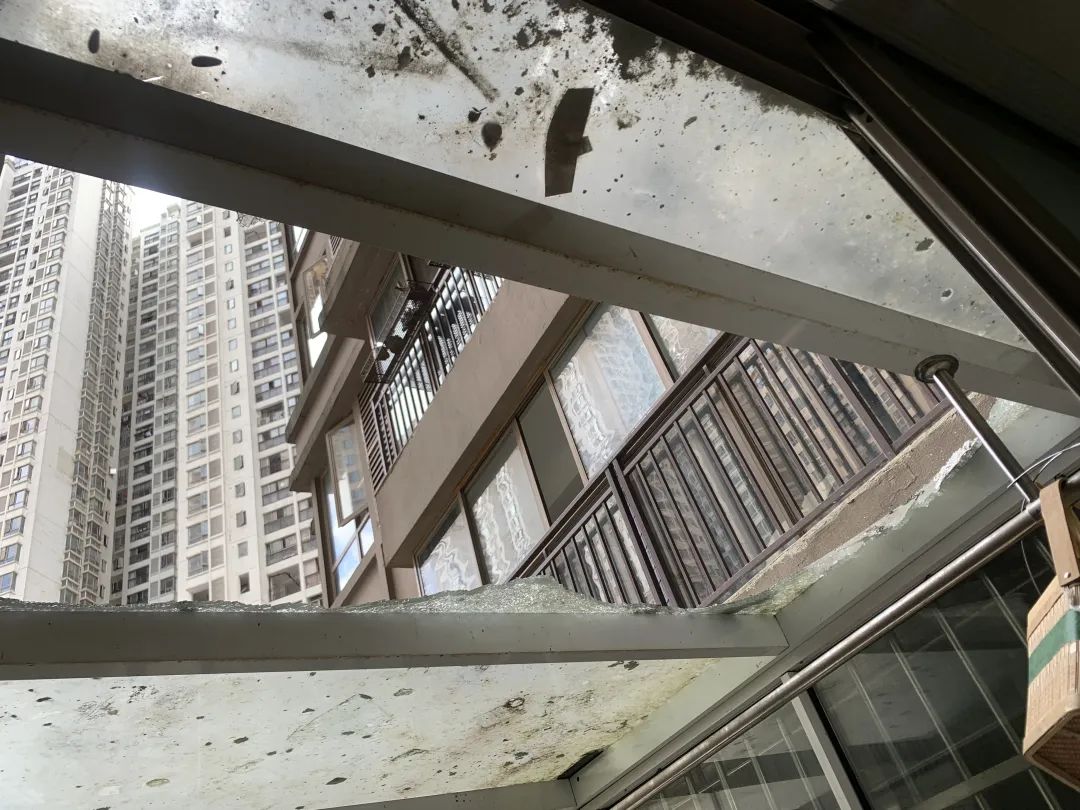 “很大一声,像爆炸一样,然后玻璃‘哗啦啦’地就碎了下来,我再晚回来一会儿的话就要砸到我了。”