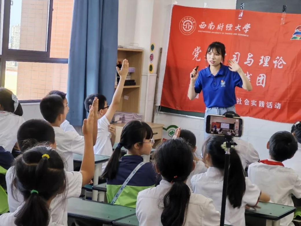 最后,团队走进荣县中小学,针对当地中小学生开展党史理论宣讲,通过讲述党领导的青年运动史,帮助同学们从内心深处厚植对党的信赖、对中国特色社会主义的信心、对马克思主义的信仰。