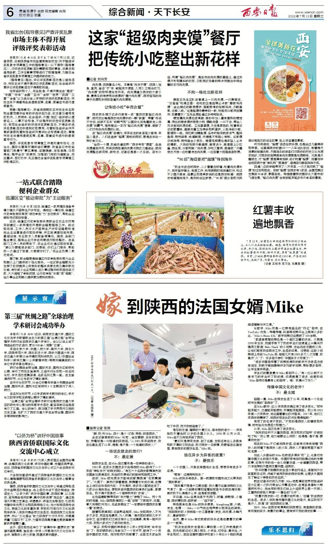 坐在记者面前的Mike(马克),金发碧眼,妥妥的老外脸,张嘴却是一口地道的陕西话。“从2001年来到西安,我在这里生活了21年,得是(是不是)一个地道的西安人?”