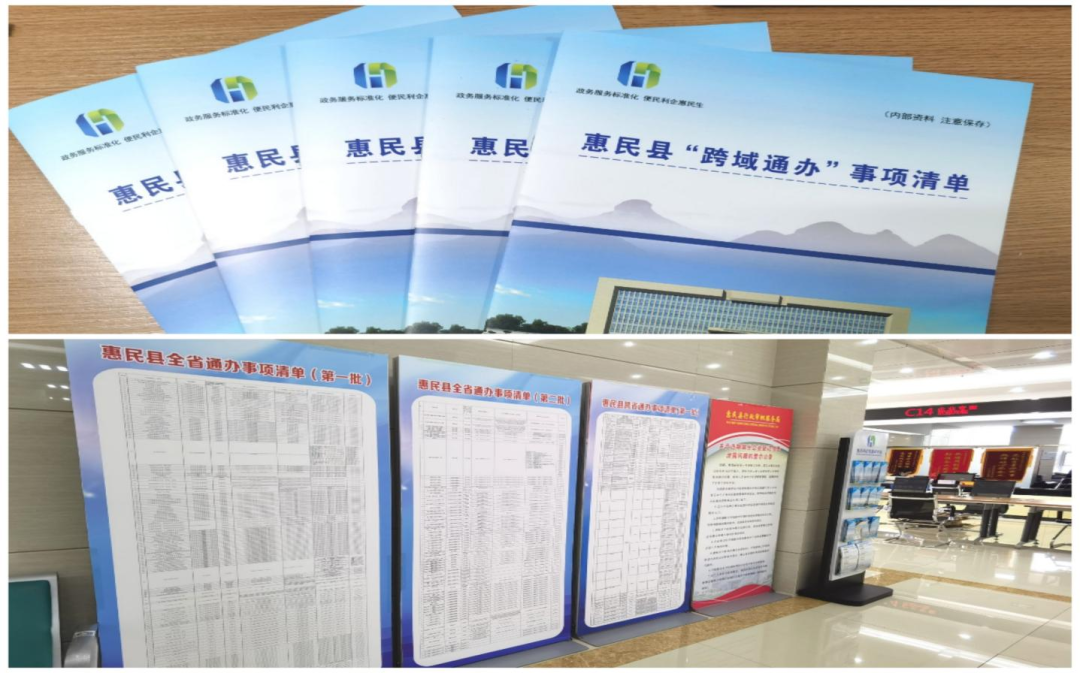 一是梳理公布“跨域通办”事项清单,形成“一体化”工作体系。结合国家部署“跨域通办”事项及省部署的“全省通办”事项,围绕医疗、住房、社保、民政、公安、交通等民生领域,梳理出惠民县能实现异地咨询、异地受理和异地办结的“通办”事项355项,明确事项线上线下办理材料清单、办理流程、通办方式、联系电话、办理地点等信息,并通过主流媒体、微信公众号等途径向社会公众公布和试行,同时将事项清单印制成册、并制作展板放置政务中心显著位置供办事群众查阅。各事项承办单位立足惠民县域实际即时对山东政务服务网的通办事项要素进行动态调整,完善本部门“跨域通办”服务流程,通过“全程网办”“异地代收代办”和“多地联办”方式,确保实现本部门承办“跨域通办”事项在惠民“异地”好办、快办、易办的目标。
