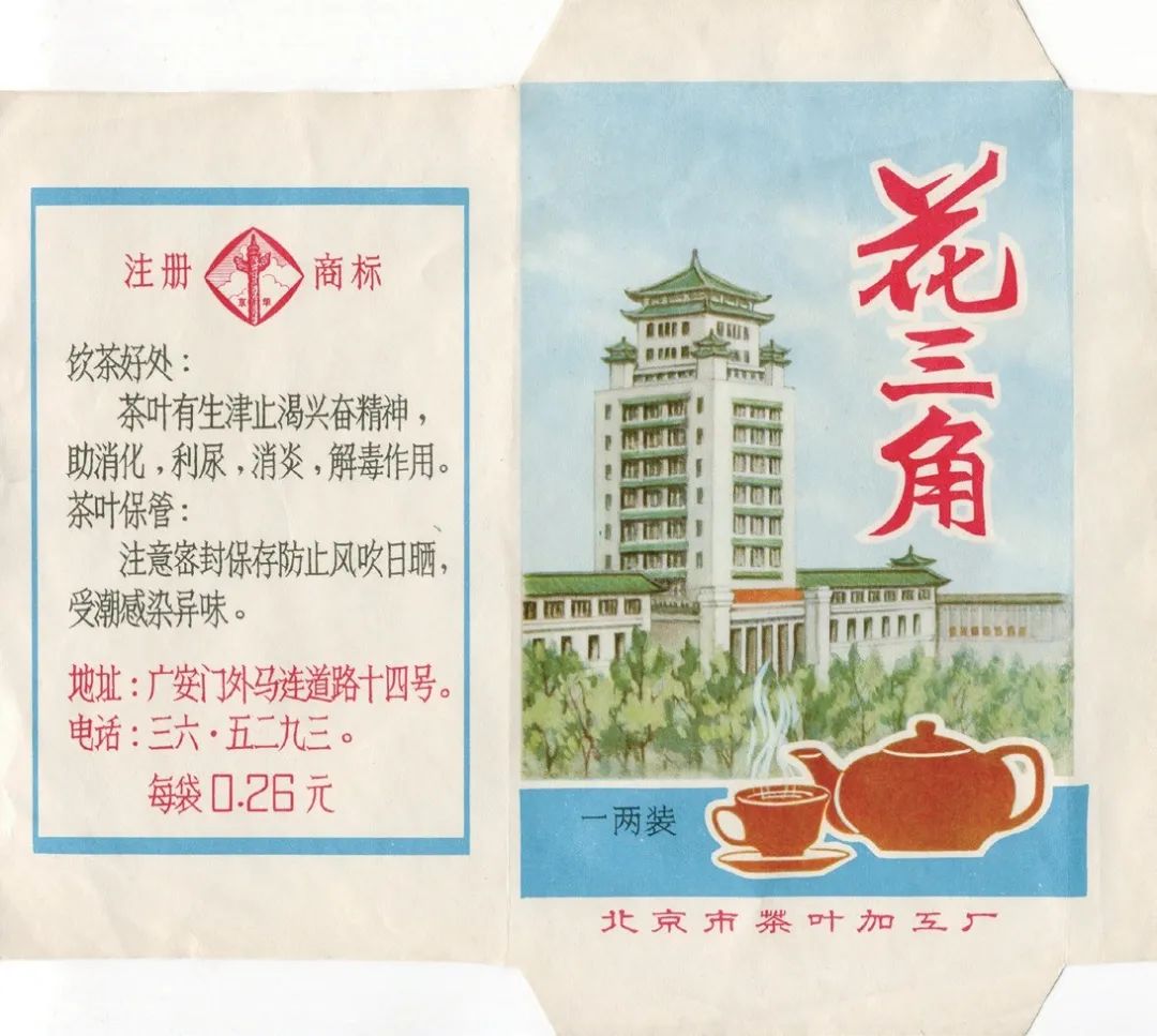 花三角也好,花茶芯也罢,当年都是作为正规商品售卖。换句话说,这些都是符合卫生条件的茶。我收藏有若干份80年代北京市茶叶加工厂出品的花三角包装,大都是一两一份的纸袋。其中一套三张,上面还戳有每市斤的价格,分别为三元、二元五角、二元二角。由于物美价廉,受到大众的欢迎。