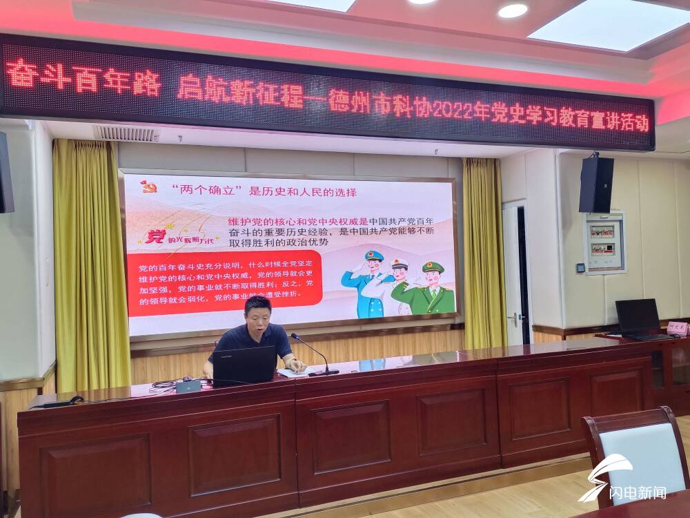 齐鲁网·闪电新闻7月13日讯 为推进党史学习教育常态化长效化,持续巩固拓展党史学习教育成果,7月12日,德州市科协组织机关全体党员干部开展党史学习教育宣讲活动。