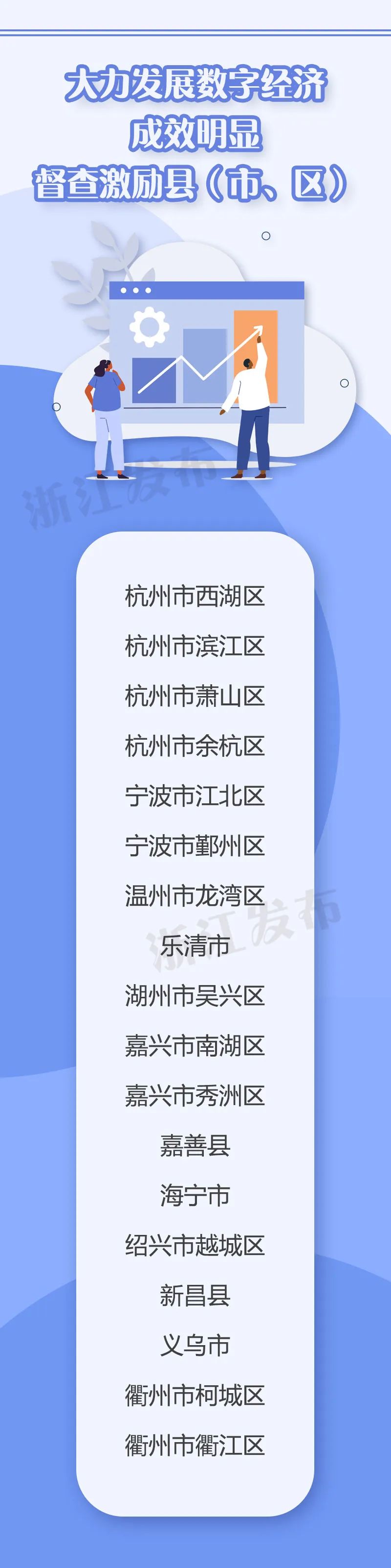17家浙江省数字工厂标杆企业(认定类),22家浙江省数字工厂标杆企业(培育类)(☜点击蓝字查看详情),4家国家信息消费示范城市,18个省级数字经济创新发展试验区,10个连续三年获评全国县域数字农业农村发展水平先进县(市、区),2个首批浙江省数字生活新服务先行市、14个首批浙江省数字生活新服务样板县,10个首批浙江省示范智慧商圈,32家浙江省“未来工厂”,28个第二批省级工业互联网平台,75个浙江省第一批制造业“云上企业”,3家数字经济领域省实验室,26家数字经济领域省重点实验室,4个数字经济领域省技术创新中心和10个浙江省第一批“未来农场”。