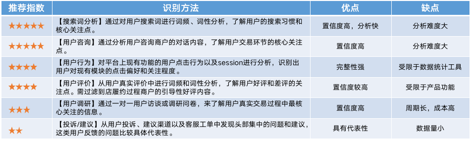 用户和商户调研虽然周期长、成本高,但是必要性很大,主要是可以验证前序方法识别到的核心决策因素是否为真,以及补充未识别到的核心决策因素。