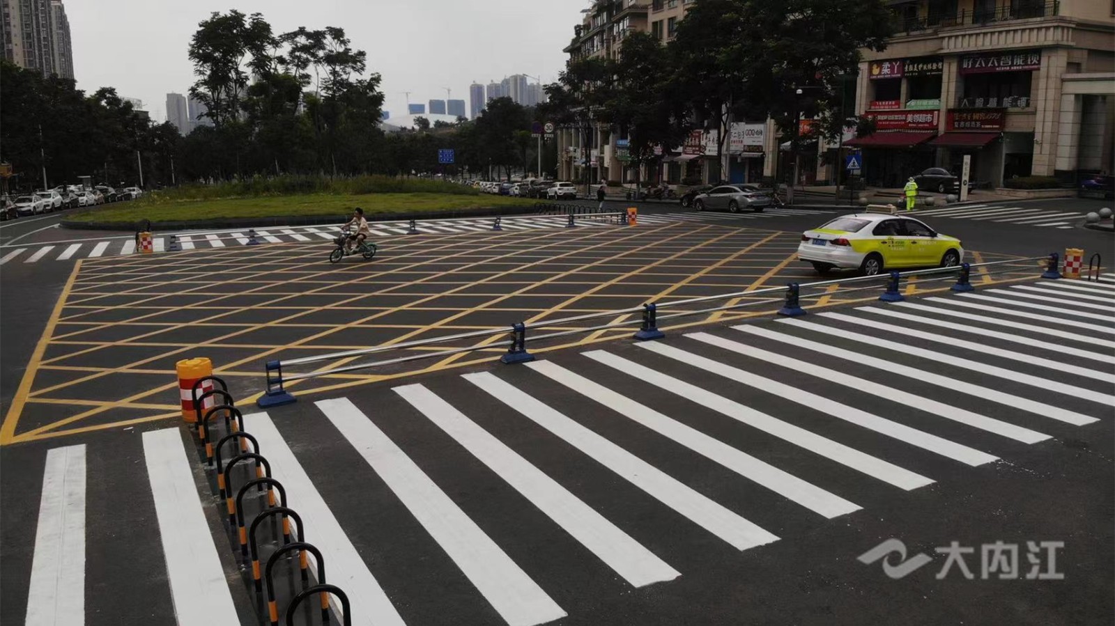 近日,记者在该小区(一期)南门路口看到,这里大面积的空地已经施划了斑马线和黄色网状线,斑马线周围还安装了硬质隔离护栏和U型护栏,实现了人车分流,现场交通秩序得到明显改善。
