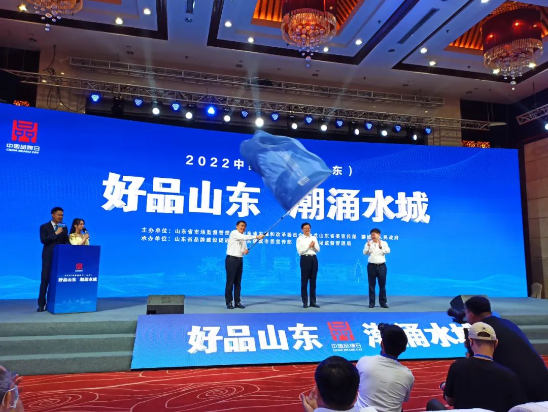 7月13日,在聊城市举办的2022年山东省“中国品牌日”活动上,与会人员接过“中国品牌日”(山东)活动旗帜,标志着日照成功申办2023年“中国品牌日”(山东)活动。