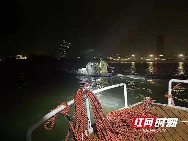 1月29日晚,公安民警对湘江河电鱼的3名犯罪嫌疑人进行追捕现场