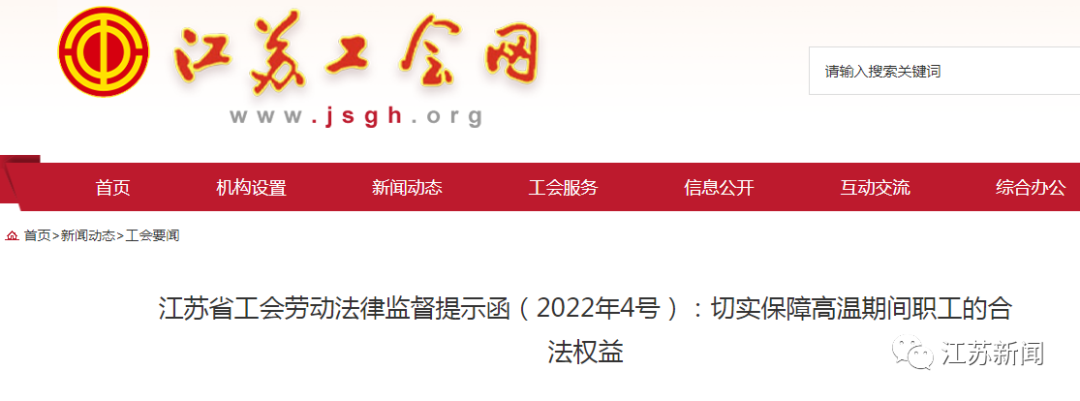 让我们共同努力,切实维护高温期间职工的合法权益,促进企业健康发展,携手为江苏“扛起新使命、谱写新篇章”作出更大贡献!