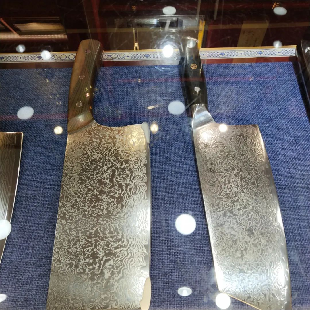 “推荐选择一体龙骨的刀,就是一块材料锻造下来的,选厚度高的刀,比较不容易断。目前市场上比较流行的材料之一是大马士革钢材,这种材料的特点是表面有花纹,它本身的硬度比较高,可以满足消费者对锋利度的要求,同时那个花纹的韧性比较好,两者一结合,很适合家庭使用。” 马先生称。
