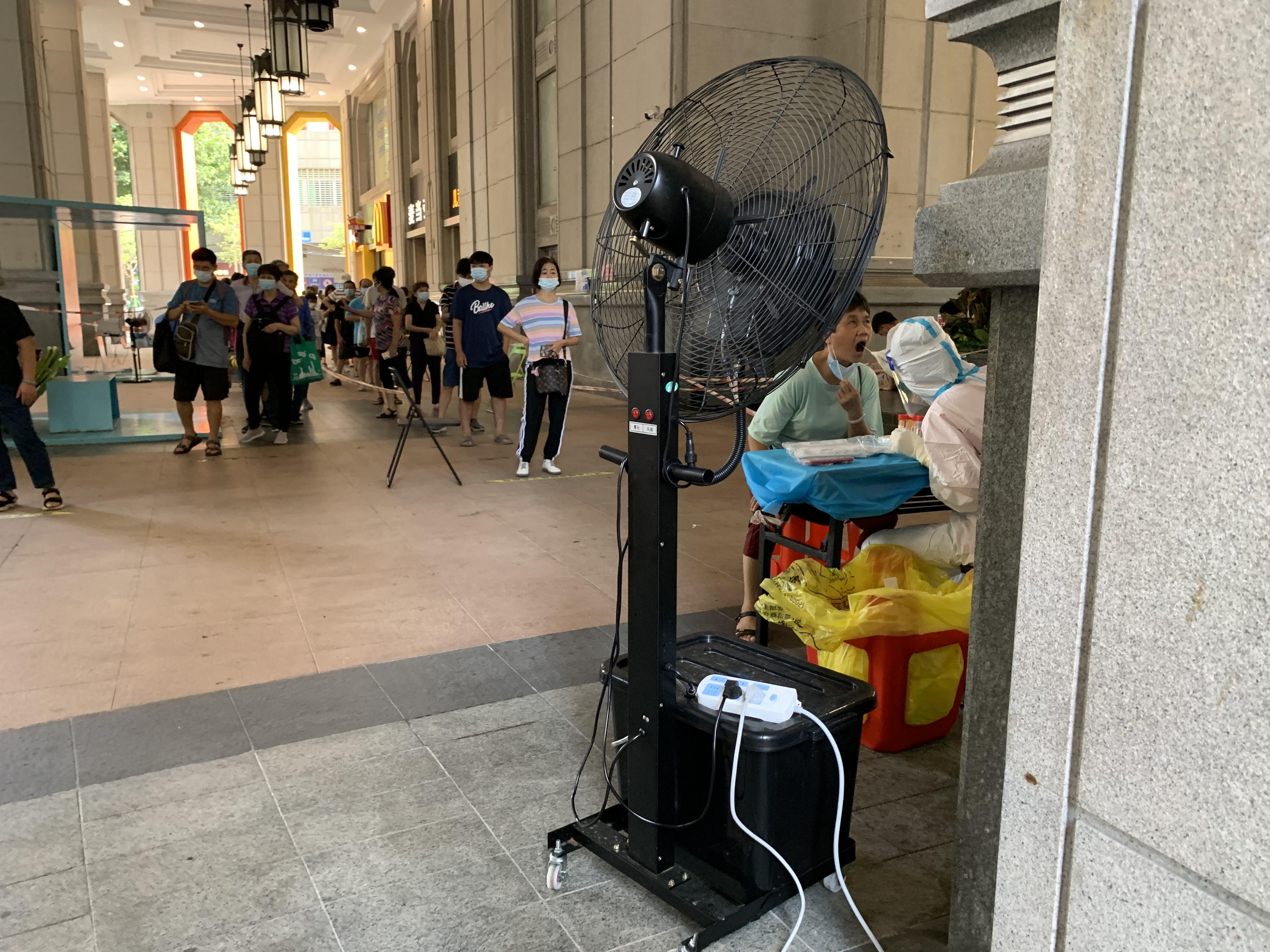 “能为‘大白’送上凉风,我们街坊都感到高兴,希望他们夏日里也不要太过辛苦!”街坊梁女士说,她也看到有社区居民和组织,会送来水和风扇,希望一起为现场检测点降温。