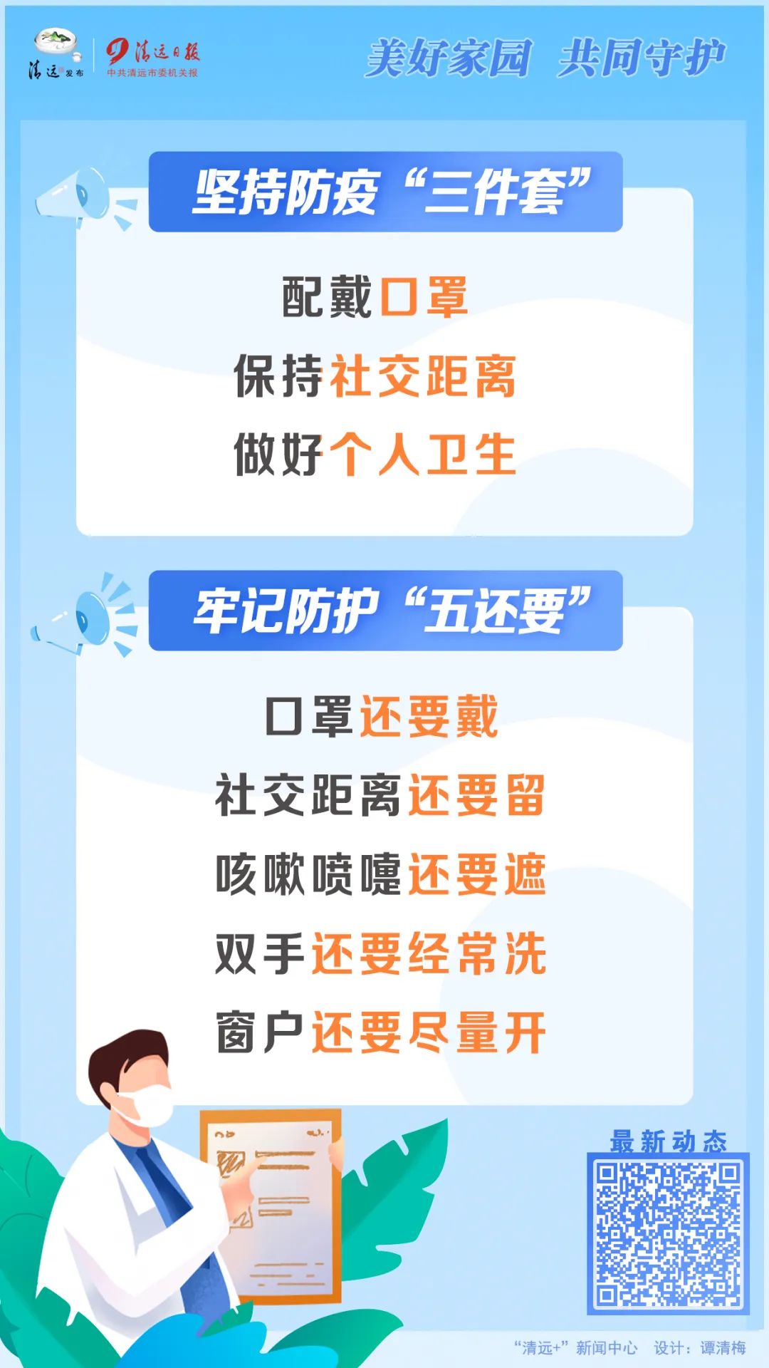清远疾病预防控制中心提醒:疫情防控形势依然严峻,风险无处不在。发生本土疫情期间,非必要不流动、非必要不聚集、必要的要报备。