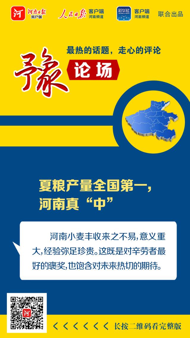 如今,夏粮数据出炉,河南小麦普遍呈现出产量高、质量高、售价高的“三高”特点。来之不易的丰收答卷,体现出粮食安全“国之大者”的重要意义。“夏粮丰收了,全年经济就托底了。”夏粮是全年粮食生产的第一季,手里有粮、心里不慌,把饭碗牢牢端在自己手上,我们就有了应对各种风险挑战的底气,保民生、保供给、稳预期又增添了一份信心。