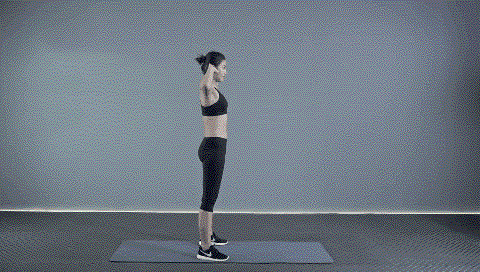 动作要点:挺胸收腹,保持腰背挺直,起身时手臂自然伸直。