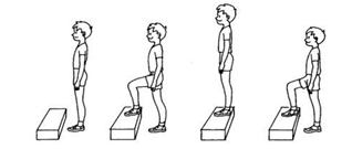 练习时可以让同伴用节拍器或声音提示你。因此,你需要找一个家人,他将帮助你保持适当的踏跳节奏。节奏为每分钟踏30次(上下),每次3-5分钟。2秒钟上、下各踏一次(也就是说,把节拍器设置为每分钟120拍,每响一下踏一次)。在练习时左右腿轮换做,每次上下台阶后上体和双腿必须伸直,不能屈膝。