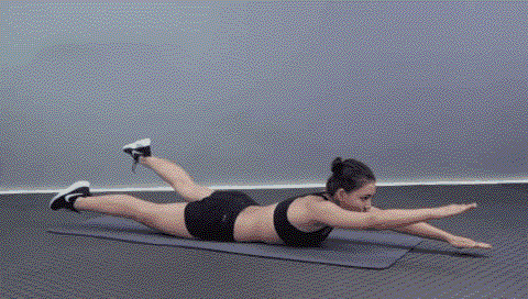 动作要领:腹部持续紧张,控制动作频率,勾住脚尖。