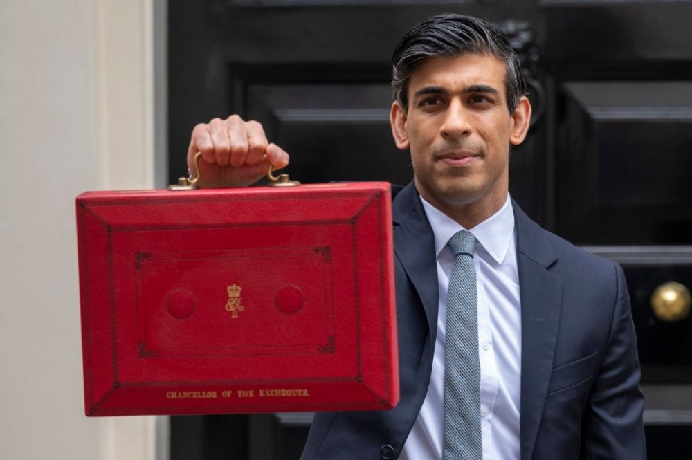 2021年3月3日,时任英国财政大臣里希·苏纳克准备前往位于伦敦的议会。新华社发(雷伊·唐摄)