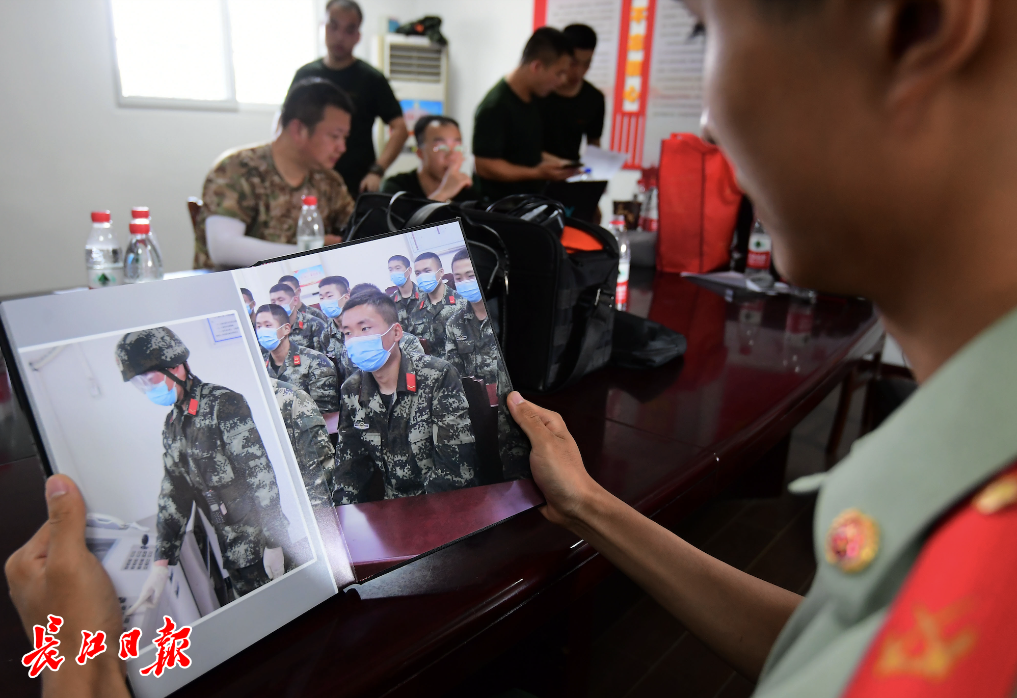 7月14日,战友翻看李林雨相册。记者刘斌 摄