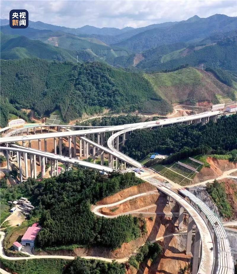 7月14日,广西规模最大、墩身最高枢纽互通——平塘至天峨高速公路天峨枢纽互通顺利实现全线贯通。
