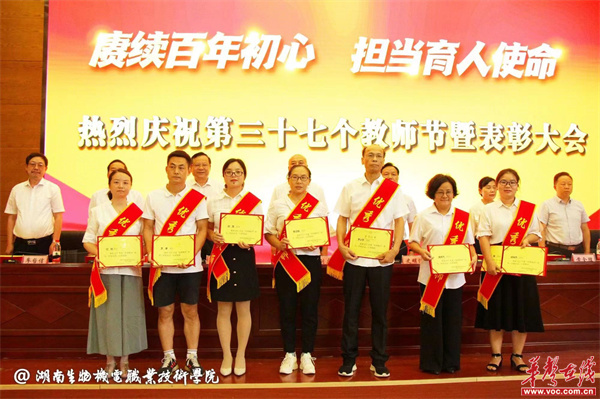 刘芳获“优秀教师”称号(左三)。