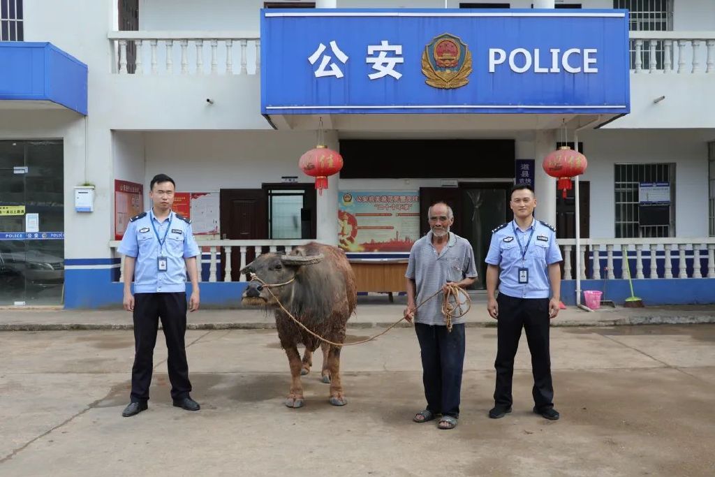 ( 图为民警将被盗耕牛返还给群众)