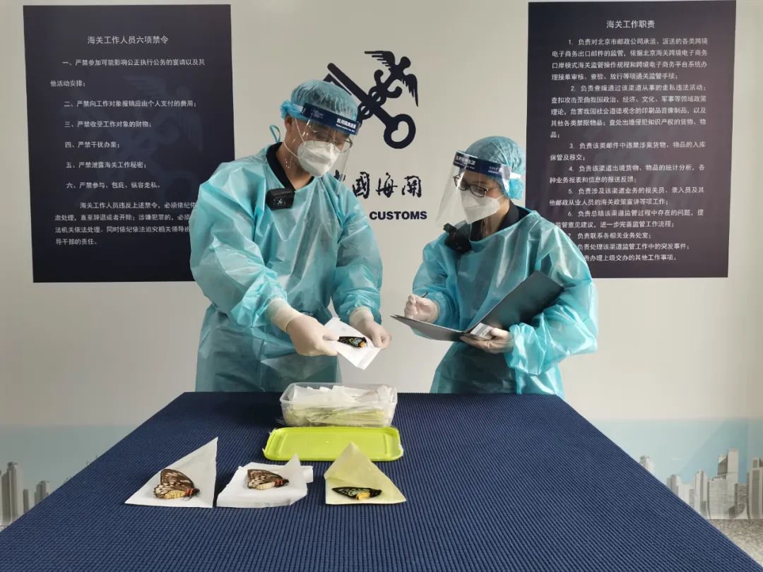 北京邮局海关关员查获多件蓝鸟翼凤蝶标本