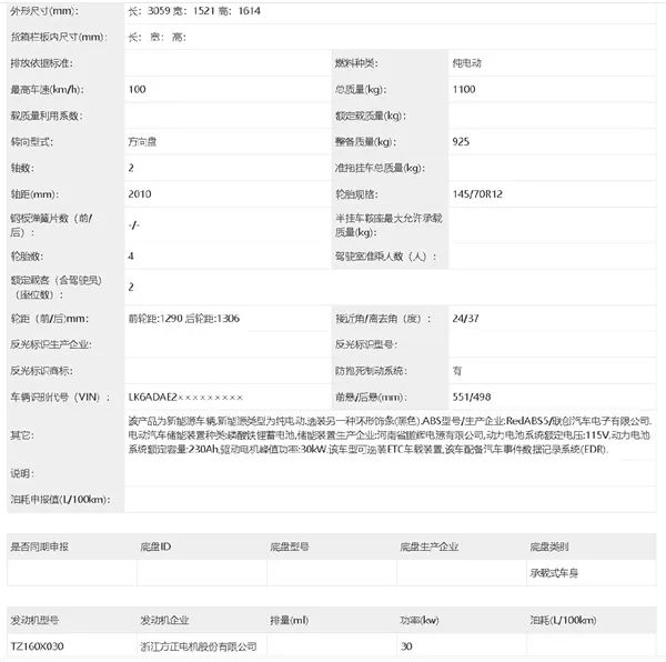 动力方面,新车将搭载方正生产的30kW电机,内置额定容量约230Ah磷酸铁锂电池,最高续航可达300km。